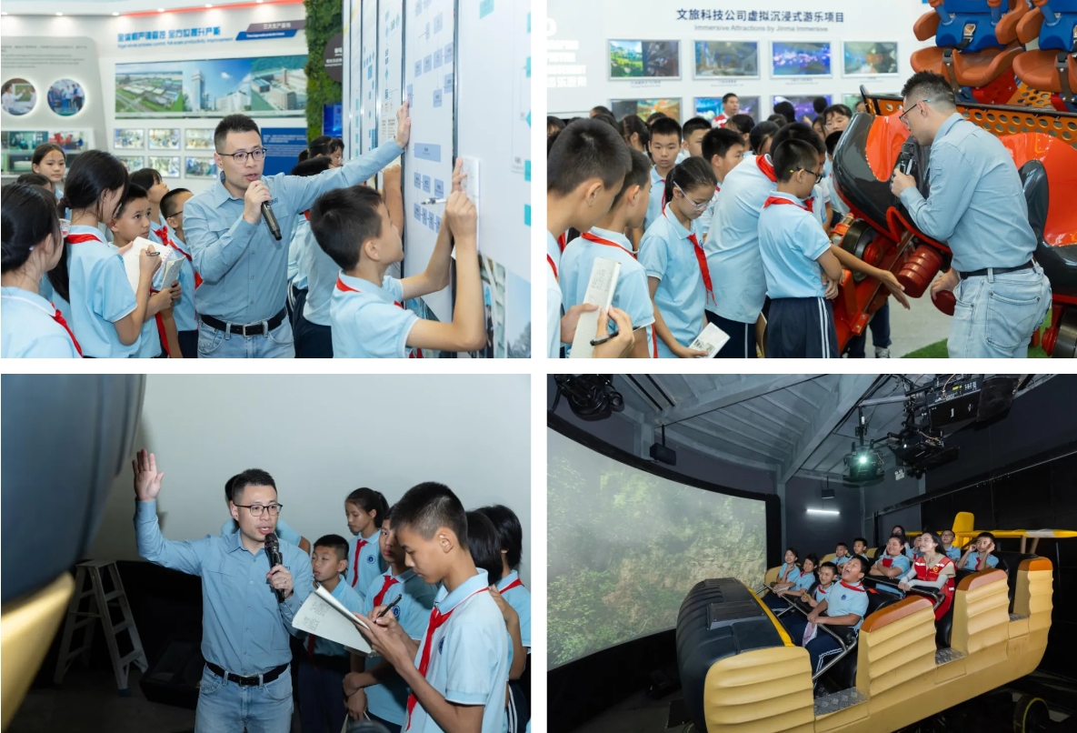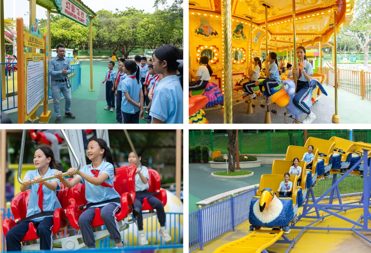 活動期間,中國特種設(shè)備檢測研究院游樂設(shè)施與客運索道專業(yè)人員、中山市游戲游藝行業(yè)協(xié)會秘書長雷嘉詠帶領(lǐng)中山市港口鎮(zhèn)中心小學(xué)學(xué)生到訪金馬游樂開展了實地參觀。